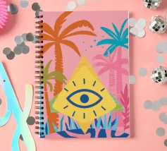 This surreal artwork portrays two robed figures walking hand-in-hand through an ancient stone archway toward a glowing sky of pink and violet hues. Above them floats a radiant geometric eye, symbolizing awareness, mystery, and deeper understanding. The blend of historic architecture, soft sunset colors, and symbolic iconography creates a scene filled with meaning and imagination. Ideal for fans of spiritual art, surreal storytelling, and thought-provoking wall décor that inspires curiosity and reflection.