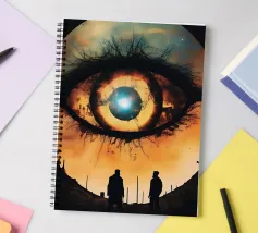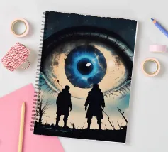 This surreal artwork portrays two robed figures walking hand-in-hand through an ancient stone archway toward a glowing sky of pink and violet hues. Above them floats a radiant geometric eye, symbolizing awareness, mystery, and deeper understanding. The blend of historic architecture, soft sunset colors, and symbolic iconography creates a scene filled with meaning and imagination. Ideal for fans of spiritual art, surreal storytelling, and thought-provoking wall décor that inspires curiosity and reflection.