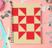 This eye-catching geometric art poster features a bold repeating pattern of bright red squares and cream/beige triangles. The precise arrangement creates a dynamic grid and visually interesting shapes, reminiscent of retro or Memphis-style design. This high-quality digital art print is produced at an impressive 7000x5000 pixels and 300 dpi, ensuring sharp lines and vibrant color for a premium poster that makes a statement.