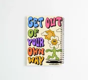 Break free with this empowering "Get Out Of Your Own Way" art print. The impactful phrase is rendered in bold, undulating typography in vibrant shades of green and purple, creating a dynamic, almost hypnotic effect. The letters are intertwined with playful organic shapes and subtle star accents, all set against a soft, complementary background. This piece captures a sense of motivational retro psychedelia, perfect for inspiring action and self-improvement in any space. This high-quality digital art is presented in a stunning 7000x5000 pixels resolution at 300 dpi, ensuring crisp details and vi