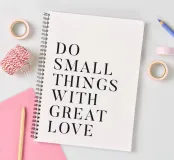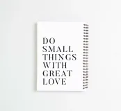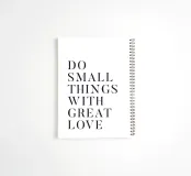 Bring positive energy into your home with this stylish typography design. The minimalist motif "Do small things with great love" inspires and motivates in a subtle way and fits perfectly into modern living spaces. The clean lines and simple black and white design make it a timeless companion on wall murals, mugs, mobile phone covers or cushions. Ideal for anyone looking for an inspiring statement and elegant decoration. A perfect gift for design lovers who are inspired by small things