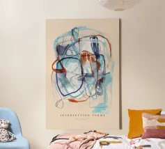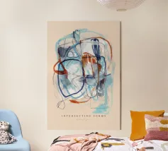 A vibrant, mixed-media composition where fluid shapes and bold colours converge. 'Intersecting Forms' captures the moment where contrasting elements meet, with layered shapes creating a sense of balance and abstract harmony.