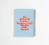 Brighten any space with this striking art print featuring the phrase “It Always Seems Impossible Until It's Done” in bold retro 3D red and white lettering on a vibrant sky blue background. The dynamic design inspires perseverance and positivity, making it a perfect gift for students, home offices, or anyone in need of encouragement. Its eye-catching colours and vintage flair suit modern and classic interiors alike. Ideal for birthdays, graduations, or to uplift your own walls with a daily boost of confidence and style.