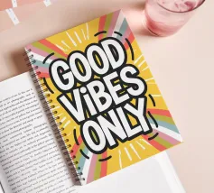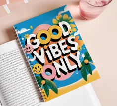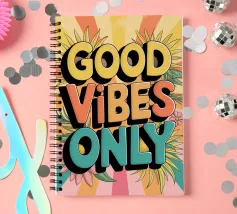 Fill your space with positivity and style with this "Good Vibes Only" digital art print. This vibrant graphic design features the uplifting message in layered orange text, set against a dynamic warped yellow and white checkered background, and surrounded by playful illustrations of smiling flowers, hearts, emojis, and other groovy symbols. It embodies a retro-inspired aesthetic designed to spread happiness and good vibes. This high-quality digital reproduction boasts a resolution of 7000x5000 pixels at 300 dpi, ensuring outstanding clarity, sharp lines, and brilliant colors. An ideal print for