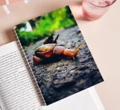 Snails are small mollusks that carry a spiral shell on their backs that acts as a mobile home. The shells are usually brown, pale yellow, or striped, and glisten slightly in the light. Snails have long, soft, grayish-brown, slightly slimy bodies that help them glide along the ground. They have long antennae with eyes at the tips, and shorter antennae that they use to sense their environment. They often appear after a rain, crawling slowly on leaves, grass or walls, evoking a feeling of gentleness and patience.