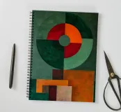 Circles and squares converge in rich hues of green, orange, and red. βGeometry in Motionβ explores the dialogue between structure and spontaneity, blending Bauhaus precision with painterly texture.