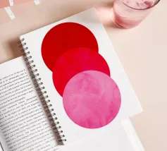 Three circles, three colours, a calm balance: this modern poster shows a vertical composition of overlapping, transparent colour areas in red, orange and violet. The gentle overlaps create depth and harmony - ideal for modern interiors, creative workspaces or minimalist art walls with a colour accent.