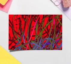 Abstract artwork with lots of energy and emotion, strong, bright colours (red, yellow, black), exciting shapes and lines. Fire and water.