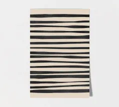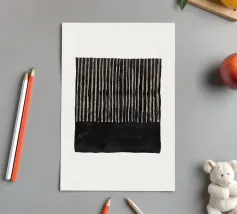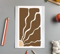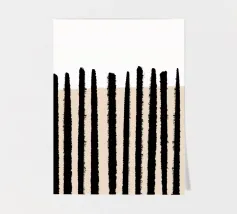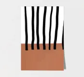 Modern abstract design featuring evenly spaced vertical black lines extending over a solid brown rectangular area, creating a striking contrast and dynamic visual effect.
