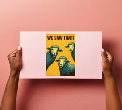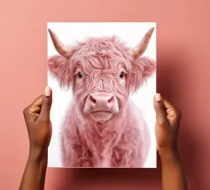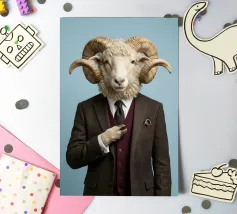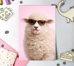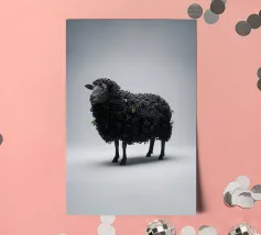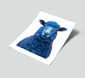 A striking image of a surreal blue sheep with textured wool, standing against a bright pink background. The bold color contrast and minimalist composition create a playful and modern aesthetic.