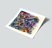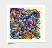 There are shapes and colours in the picture that you won't find straight away. Playful and abstract, it is a colourful work of art.
