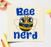We present a bee wearing glasses and holding a video game controller, accompanied by the playful phrase "Bee Nerd." This design is a clever pun that combines the words "Bee" and "Be," perfect for expressing a love for gaming with a touch of humor. An ideal gift for gaming fans and anyone who proudly embraces nerd culture!