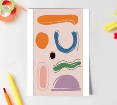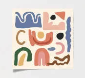 A collection of abstract, earthy toned shapes, including arches, lines, and curves, arranged in a balanced, bohemian style composition.