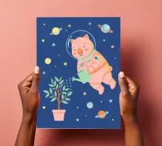 A playful illustration of two bears blowing bubbles in space that adds fun and wonder to any decor or clothing. Perfect for dreamers of all ages.