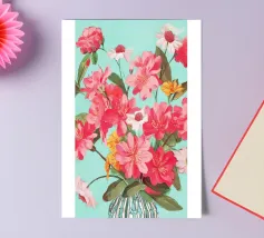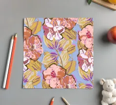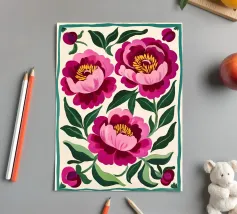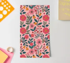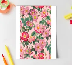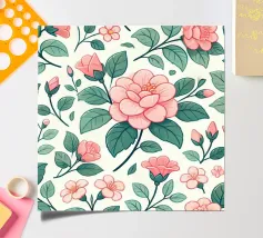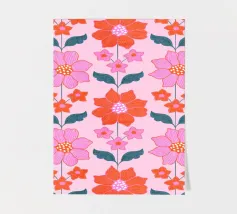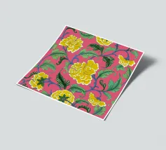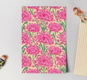 A repeat pattern of bright pink carnations with layered petals offers a sense of nostalgia and decorative charm.