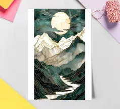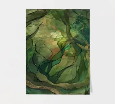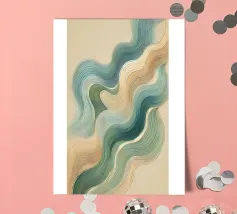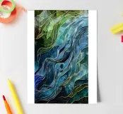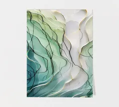 A mesmerizing abstract artwork featuring swirling, vibrant hues of blue, green, and gold. The intricate lines and patterns evoke a sense of cosmic depth and ethereal beauty. This piece is perfect for adding a touch of elegance and sophistication to any space.