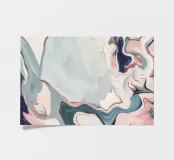 A dynamic abstract artwork with swirling forms in shades of blue, pink, black, and white, resembling a flowing celestial river, cosmic nebula, or a marbled liquid surface with a sense of movement and depth.