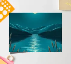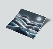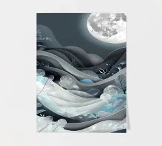 A serene and ethereal landscape bathed in moonlight, featuring rolling hills, delicate white flowers, and shimmering stars.
