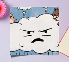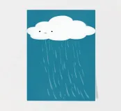 Sad little cloud with rain shower. Hand-painted sweet motif.
