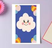 Cloud smiling, kid's room art, colourful print