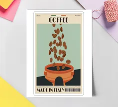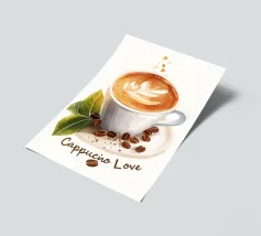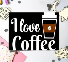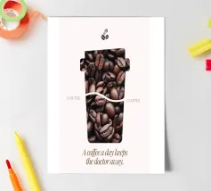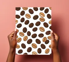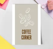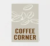 White sketches of coffee beans are scattered light Below the beans, the words "COFFEE CORNER" are prominently displayed brown leitters.