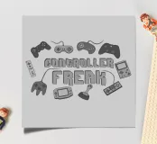 A collection of iconic video game controllers wrap the words "Controller Freak" in a retro design. Perfect for those who have a passion for consoles and gamer nostalgia. Ideal for players who collect memories and achievements in the world of games!