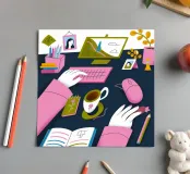 A desk adorned with books, a computer, and coffee invites productivity and creative inspiration.
