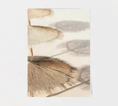 Light and shadow play beautifully under a rustic woven canopy, with soft linen swaying gently in the breeze. A tranquil moment of elegance and simplicity.