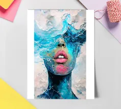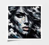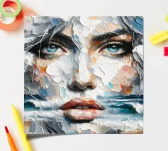 Painting of the sea, waves and a female.