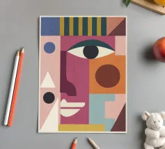 Bold shapes and vivid hues create a striking and engaging composition. This painting captures the spontaneity and joy of artistic exploration, inviting viewers to revel in the creative process.