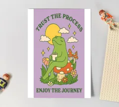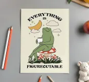 “Everything is Figureoutable” features a serene frog sitting peacefully on a mushroom, sipping a warm drink under the moon and stars. This calming artwork inspires optimism, patience, and the belief that every problem has a solution. A delightful piece to encourage resilience, positivity, and mindfulness in everyday life.