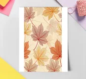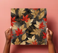 This intricate, seamless pattern showcases a beautiful array of leaves in rich, autumnal tones of deep burgundy, warm gold, and burnt orange. The delicate, hand-drawn style reveals the detailed veins of each leaf, creating a sense of natural elegance and depth. Against a soft, neutral background, the different sizes and colors of the leaves overlap to create a harmonious and sophisticated design. This versatile pattern is perfect for a wide range of products, including fabric for home decor or apparel, stationery, scrapbooking, wallpaper, and other creative projects. The timeless, nature-inspi