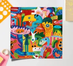 In "Fantasy Creatures," imaginative beings and fantastical elements come together in a vibrant composition. This painting invites viewers to explore a magical world where creativity knows no bounds.