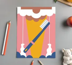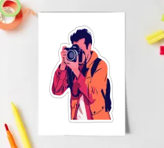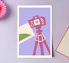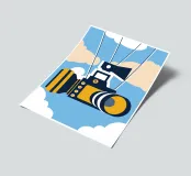 A stylized illustration of a camera suspended in the sky, perfect for photography-related designs.