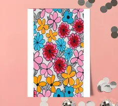 This flower watercolor pattern artwork features a repeating pattern of flowers rendered in a watercolor style. The artist (kathrinmay) has used layering, blending, and texture to bring the flowers to life. Perfect for those who appreciate floral art.