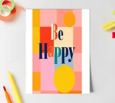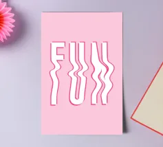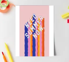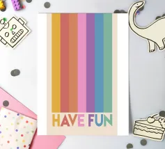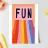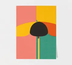 Minimal typographic artwork with bold color stripes and a simple word. Clean, playful composition.