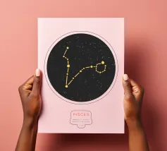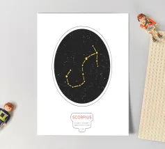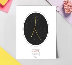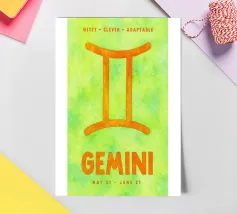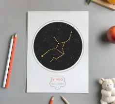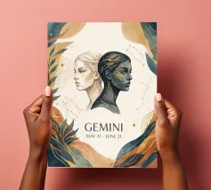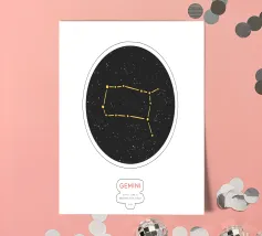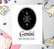This design represents the zodiac sign of Gemini, symbolized by two twins in balance and harmony. With a circular composition, the image plays on geometric elements and stylized dots that evoke the duality and versatility of this sign. The lines and central details are balanced, suggesting the connection between the two twin personalities, while the arrangement of the dots around the circle emphasizes the idea of ​​movement and continuous change, typical traits of Gemini. The minimalist design with black and white contrast makes it elegant and easily adaptable to different furnishing styles.