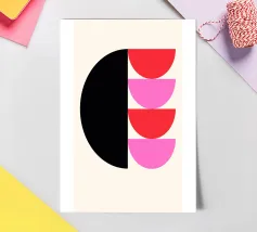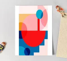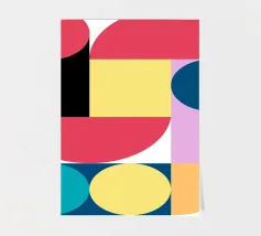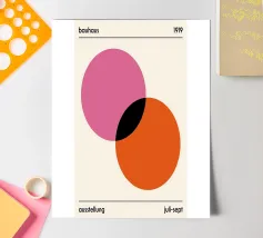 Embrace the aesthetic of modern design with this striking geometric abstract art print. Featuring a captivating composition with two large overlapping circles in contrasting colors, set against a background of solid color blocks (pale pink and magenta/dark pink). This artwork uses simple geometric forms and bold color contrasts to create a visually engaging abstract piece, exploring the interaction of shapes and hues. This high-quality digital art file boasts a stunning 7000x5000 pixel resolution at 300 dpi, ensuring exceptional detail and clarity for your poster print. A perfect piece for des