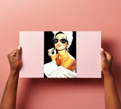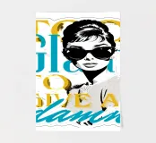 This design combines Audrey Hepburn's timeless elegance with a modern saying: "Too glam to give a damn". The silhouette exudes charisma, while the saying conveys self-confidence.