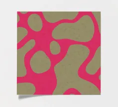 A simple and playful pattern of green, pea-like dots is scattered across a vibrant pink background, creating a fun, cheerful, and modern design.