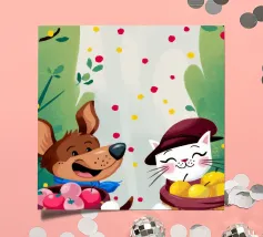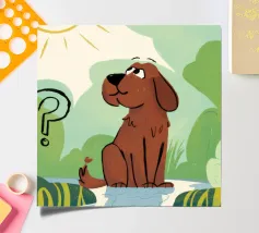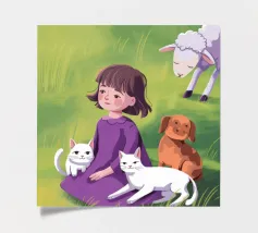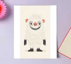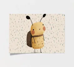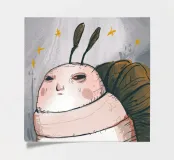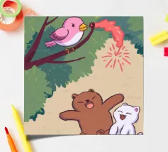 This artwork depicts a grumpy-looking cloud with a thought bubble containing a bird and a bear. The humorous and imaginative scene is set against a soft blue background.