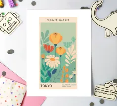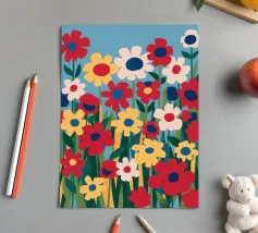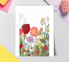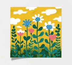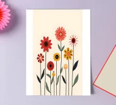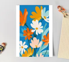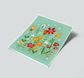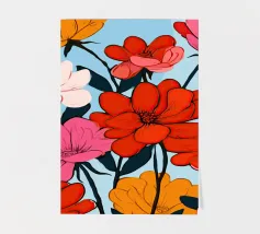 This floral illustration in warm shades radiates the freshness of spring and the arrival of warmer days. Inspired by wildflowers, it offers a cheerful and lively vibe, with soft tones of red, orange, and yellow, reminiscent of nature's first awakening.