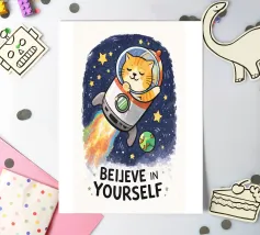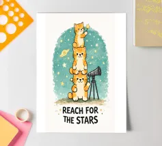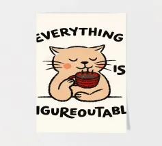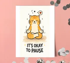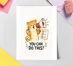 This hand-drawn illustration features a calm, determined cat reminding you to keep moving forward. With a warm color palette and gentle lines, this artwork celebrates perseverance, patience, and inner strength. A comforting piece for workspaces, studios, or any room that needs quiet motivation.