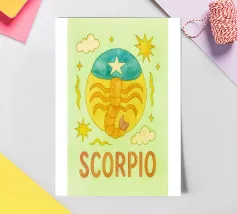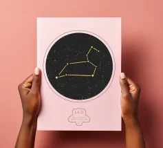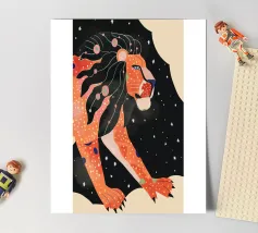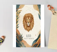 Adorable and playful illustration of the Leo zodiac sign. This fluffy, colorful Leo, surrounded by stars and with a lively expression, captures the sign's warm and proud energy. Perfect for those who love astrology and are looking for a unique and fun touch to their space. Available on various home products and accessories