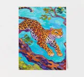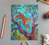 Leopard jumping between tree with fauvism painting art style