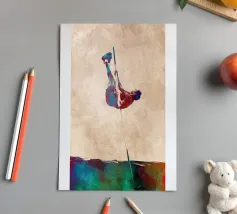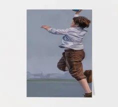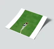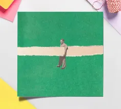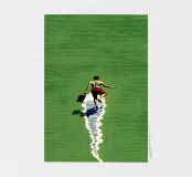 A single figure walks barefoot across a huge green surface - but its track is made of glistening water. The narrow path of water runs through the picture like a crack in everyday life, allowing reality and surrealism to flow into one another. With a determined stride, the figure embodies freedom, unusualness and the art of finding one's own way.