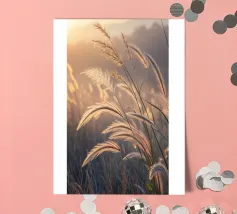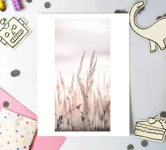 Fine structures, delicate flowers and fragile blades of grass run through the picture like filigree veins, creating a calming yet deeply moving scene. The dominant shades of pink lend the work a restrained elegance and invite the viewer to discover the beauty in simplicity. This minimalist composition whispers softly of the transience of nature and the subtle yet powerful beauty that lies hidden in every moment of life.
