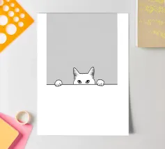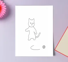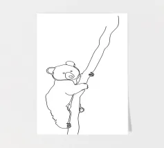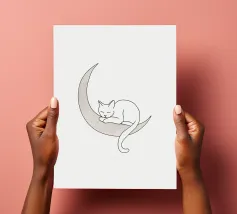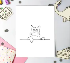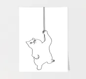 The playful and adventurous spirit of a cat hanging on a string with this minimalist line drawing. A modern abstract art piece that symbolizes curiosity, agility, and feline mischief.