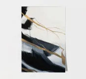 Sweeping golden lines cut through dark ink washes with volcanic grace.