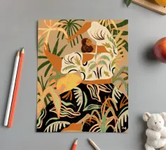 Illustrator and graphic designer Joyce Lay Hoon Ho - aka Arty Guava - lives and works in Vancouver. Memories of her childhood in Malaysia, nature and dance are just some of the sources of inspiration that can be found in her work. With bright flowers, celebratory poses and animals roaming freely in the wild, her cheerful designs are laced with a touch of fantasy and convey an exhilarating joie de vivre.